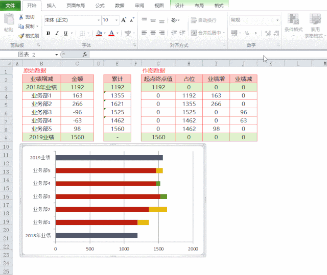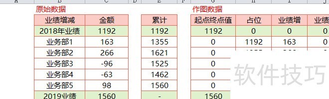 4.1 数据预处理:所使用的辅助数据与常规瀑布图一致,可参考前文教程。目前掌握这种改进型瀑布图制作方法的人较少,文中提供详细操作步骤。2、插入堆积条形图:按示例选中对应数据区域,插入堆积条形图,并删除图例项。3、格式调整:首先将纵坐标上的分类项进行逆序排列,以便图表更符合阅读习惯。