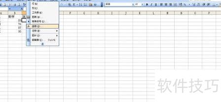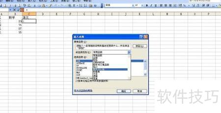首先选中表1的C2单元格,即语文成绩首个录入位置,然后点击插入—函数命令。