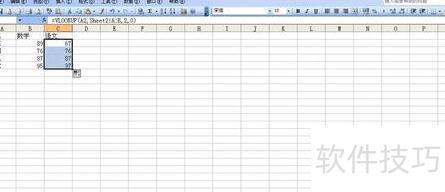 选中C2单元格,拖动填充柄向下,即可将表2的语文成绩全部填入表1。