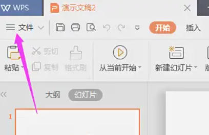 在演示文档界面中,找到左上角 【文件】 旁边的 「三」图标(即 全局菜单按钮,形状为三条横线)。