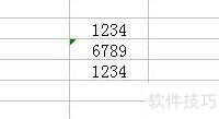 文本格式的单元格左上角带有绿色小三角标记(如示例中的6789),而常规格式数据(如1234)则无此标记,下方的1234为求和结果,体现两种格式在计算中的差异。