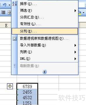 选中需修改的文本数字单元格,点击Excel数据菜单中的分列功能。