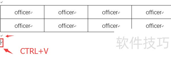 在上半部分表格的段落标记处再次按回车,接着在第二个段落标记处按下Ctrl+V粘贴。若在第一个段落标记处粘贴,表格将自动重新合并。