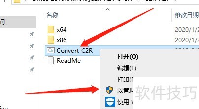 打开授权转换工具,右键点击Convert-C2R,选择以管理员身份运行。