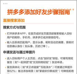 在拼多多中添加好友可通过拼小圈功能实现:更新至最新版本,点击好友邀请进入拼小圈,选择“好友”按钮添加,可同步购买商品并查看好友动态。部分功能需通过好友邀请或验证。