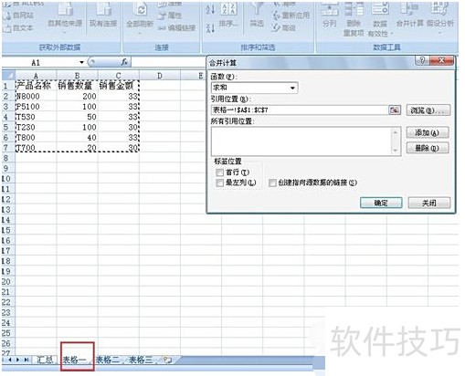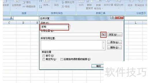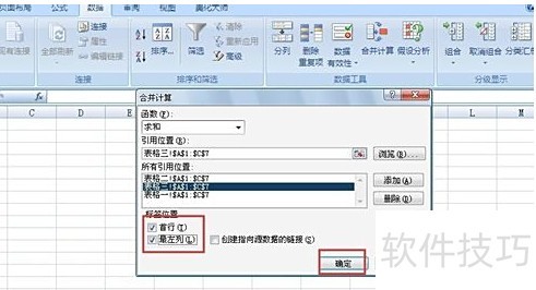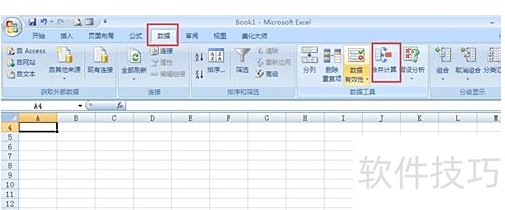 在菜单栏中选择数据下的合并计算。