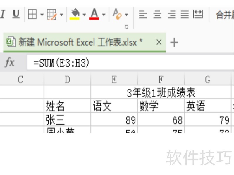 在本文示例中,输入公式=SUM(E3:H3)即可计算出该学生的总成绩,也就是对其所有科目成绩进行求和。通过手动输入或拖动单元格右下角的填充柄(十字箭头),都能实现求和操作。对于数据量较大的情况,这两种方式同样适用。如果觉得函数难以记忆,也可以直接使用求和工具来完成操作。