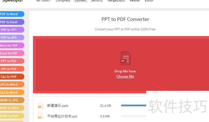 若不想下载软件,可使用在线转换方法。搜索SpeedPDF并打开该免费工具,进入后选择PPT转PDF功能,即可直接完成转换,操作简便快捷。