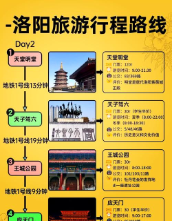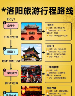 洛阳一日游推荐路线包括龙门石窟—王城公园—洛邑古城,或洛阳博物馆—白马寺—应天门,兼顾历史文化与休闲体验。