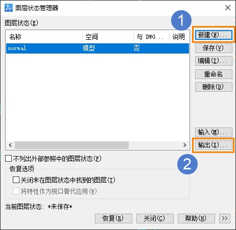 b.点击【新建】,创建【新图层状态名】,然后点击【输出】,把刚创建的图层状态文件保存;