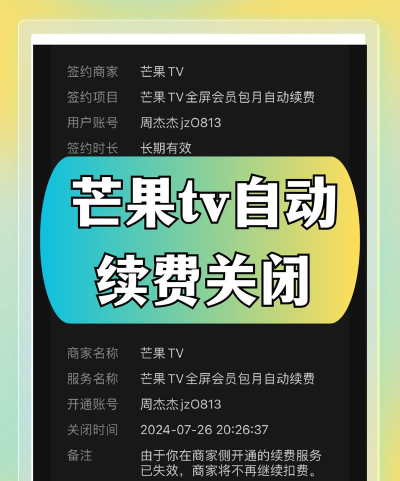 关闭芒果TV自动续费的具体流程包括:打开支付平台(如微信、支付宝),进入支付设置或扣费服务页面,找到芒果TV会员自动续费项,点击关闭服务即可完成操作。