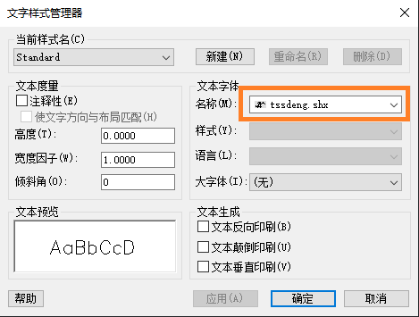 将需要输入钢筋符号的文字样式,字体设置为【tssdeng.shx】。tssdeng.shx下载。