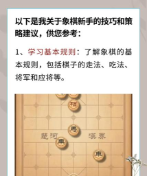 中国象棋新手可通过口诀快速入门,如车走直路、炮翻山、马走日等,掌握基本走法后可进一步学习战术技巧。