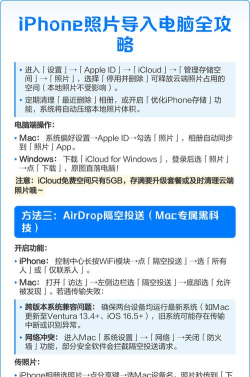 传输照片时需注意备份多渠道,如微信文件传输助手、电脑桌面和云盘,避免数据丢失,尤其重要的是确保文件完整无损。