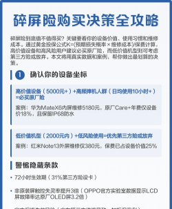 购买手机碎屏险时需注意服务期限、免责条款及购买时效,优先选择品牌官方服务以避免影响保修。