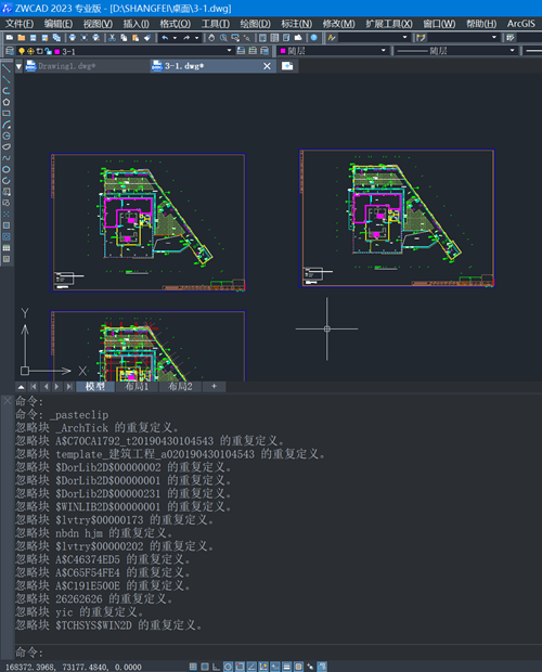 如果在不同图纸之间复制粘贴成功后,图形发生了变化,就需要关注一下这些忽略重复定义的图块名称,检查同名图块在两张图纸内的图形是否相同。