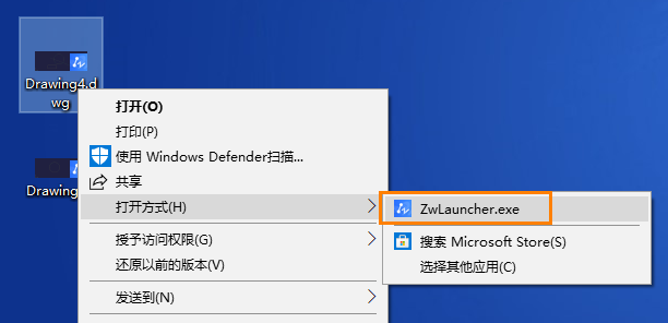 1.在dwg文件上【右键】,选择打开方式为【ZwLauncher.exe】。
