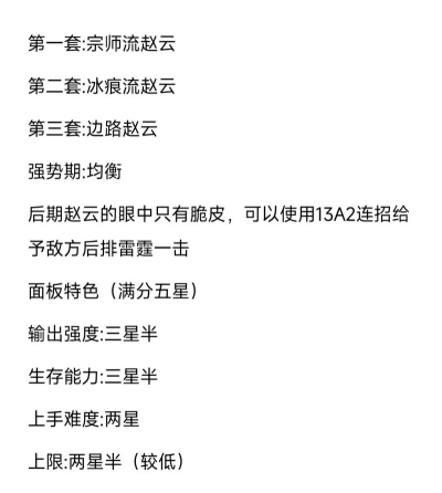 赵云版本强度与调整