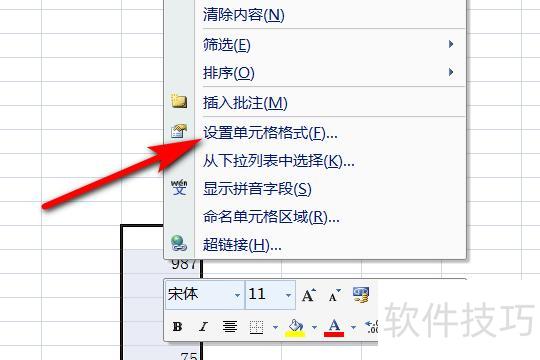 选中表格中要求和的单元格,右键选择设置单元格格式进入设置。