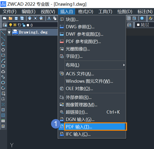 1.点击菜单【插入-PDF输入】(【PDFimport】命令) ;