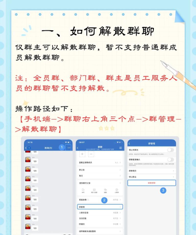在QQ中,进入群设置,选择解散群并填写理由和验证码,再输入二级密码即可。微信中,群主可直接在群设置中解散群,但无法完全清除群员聊天记录。