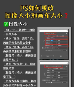Photoshop中画布大小调整用于扩展或缩小作业区域,而图像大小调整则改变图像分辨率和像素尺寸,两者应用场景不同。