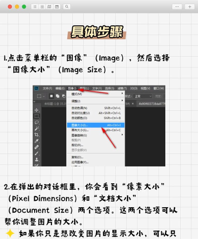 +Alt+Z(windows电脑Ctrl+Alt+Z),前进一步即是在撤销一步或几部后,返回之前未撤销的一步 图像菜单下有图像大小,画布大小等 画布大小:在我们新建文档时会弹出一个面板,面板里的宽度和高度即为画布的大小,可根据实际情...