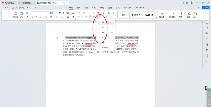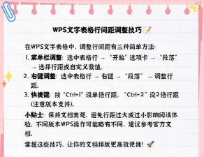 在WPS中调整行间距,可通过选中文字后点击“开始”选项卡中的“多倍行距”或“段落”设置,选择单倍、1.5倍等类型,或使用快捷键Ctrl+1、Ctrl+2等快速设置。