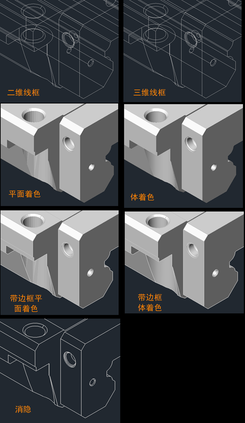 【二维线框】和【三维线框】在新版中没有区别,旧版中三维线框无法显示光栅, OLE 对象,线型,线宽。