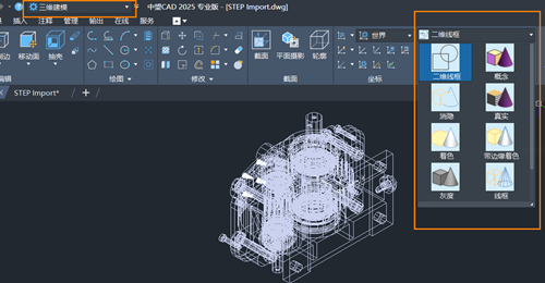 中望CAD2025及以上版本增加概念、X射线、灰度等视觉样式。