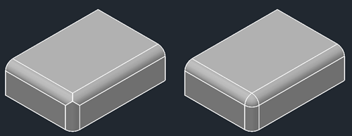 三维实体倒角和平面倒角的功能一样,使用命令为【fillet】和【chamfer】。