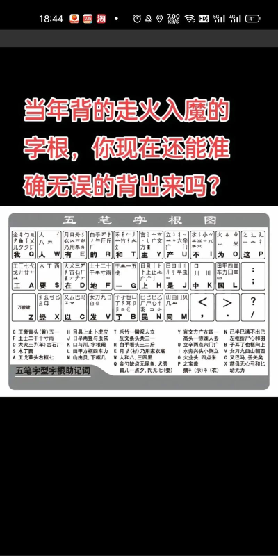 方法一死记:上图是我用来法习五笔的法宝,左边是字根口诀,右边是字根图.我会把口诀上没提到的字根圈出来,方便记忆. 方法二多练:平时打字一定要强逼自己用五笔打出来,碰到不会的就去查,查到后要记住并理解为什么是这打,我当时为什么没打出来. 方法三多思:多思考拆字规则,要下载一个查五笔拆字的APP.去深入了解,拆字要方式. 方法四沉浸式去热爱输入:要去享受指尖在键盘上飞舞屏幕上不停涌现出你的思想的过程,码字就是一种表达方式.