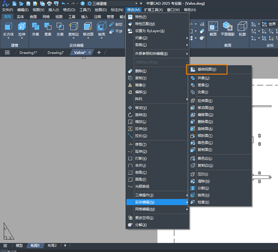 接着点击菜单【修改-实体编辑-基础视图】(【VIEWbase】命令),根据命令提示,指定三视图放置位置即可。