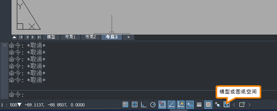 第二种方法是在状态栏上,有【模型或图纸空间】的按钮,通过点击该按钮进行切换。