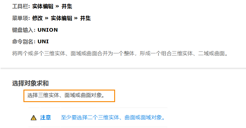 发生这种情况的原因一般如下。以【并集】为例,操作对象是三维实体、面域或曲面对象。如下图。