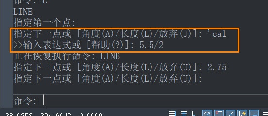 一般来说,我们都是通过在命令栏输入【'cal】的方式,进入到输入表达式的方式。下面以设置直线长度为例展示具体用法: