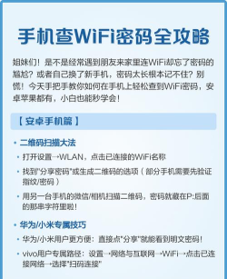 手机查看WiFi密码可通过系统设置分享二维码,扫描后显示密码;或通过路由器管理界面查看;部分安卓手机需root权限使用第三方工具查看已保存密码。