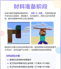 在《我的世界》中,制作栅栏需将木头制成木板,再用木板在工作台合成木棍,最后用木棍和木板按3x3格子合成栅栏。也可使用其他材料如地狱砖制作特殊栅栏。