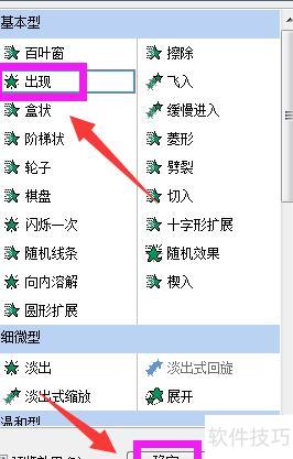 4、在添加效果窗口中选择出现,确认即可。