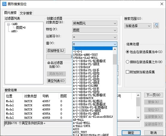 第二种方法是点击菜单【编辑-查找】(【FIND】命令),在图形搜索定位对话框中,设置需要过滤的对象为图层,并指定图层名,点击【查找-确定】,即可选中。