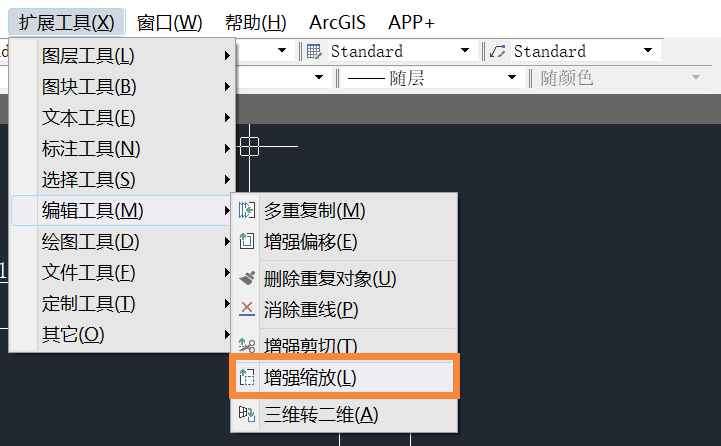 方案一是点击菜单【扩展工具-编辑工具-增强缩放】(【EXSCALE】命令),选择需要缩放的图形,设置XY方向的比例因子,进行缩放。