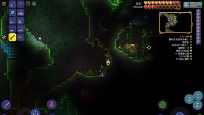 叶绿矿需使用神圣镐挖掘,可在丛林地下或腐化/猩红区域找到。挖掘后可利用其同化周围泥块的特性繁殖,用于制作高级装备和工具。