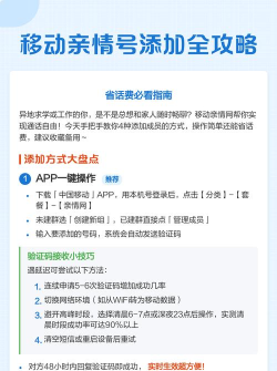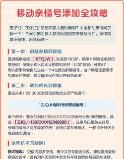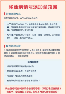中国移动亲情号码可通过官方APP、营业厅、短信或客服电话设置,具体操作包括添加家人号码并确认关系。