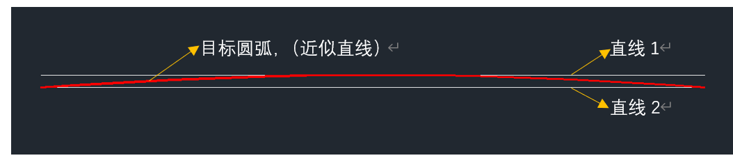 首先,确定要绘制文字的位置,绘制接近直线的圆弧。