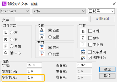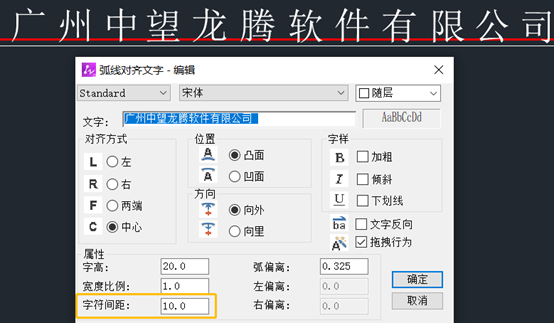 目前中望CAD中只有弧形文本有能够调整字符间距,但是文字只能沿着弧线布置,缺少沿着直线布置的功能。