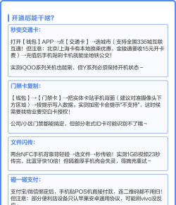 小米手环8 NFC版需通过小米运动APP配对并开启NFC功能,支持公交卡添加和刷卡,操作便捷,适合日常使用。