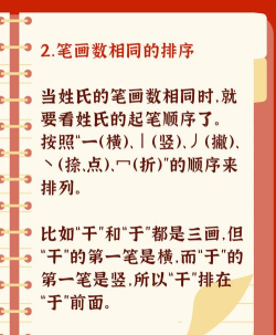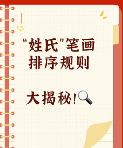 姓氏笔画排序规则:先按姓氏笔画数由少到多排列;笔画数相同时,按起笔顺序(横、竖、撇、点、折)排序;同笔画同起笔者,按字形结构(左右、上下、整体)排序;复姓按单姓处理。