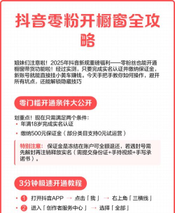 抖音商品橱窗开通需实名认证,发布视频≥10条,进入创作者服务中心申请商品分享功能,缴纳500元保证金,完成新手任务(添加1个商品)后即可解锁权限,支持视频、直播带货。
