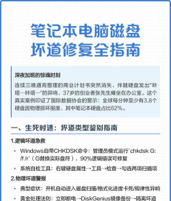 硬盘坏道修复步骤包括使用软件检测坏道范围、执行修复操作、备份数据并避免频繁访问硬盘。部分工具如DiskGenius可屏蔽坏道,但需谨慎操作。