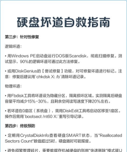 修复硬盘坏道时需注意数据备份,避免频繁开关硬盘,减少物理损伤风险。逻辑坏道修复成功率较高,但物理坏道通常需更换硬盘。